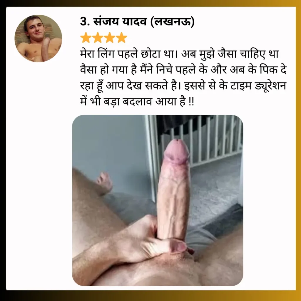 कई प्रयोग ऐसे ही परिणामों की पुष्टि करते हैं। अध्ययनों में, हमने परीक्षण से पहले और बाद में स्वयंसेवकों के टेस्टोस्टेरोन के स्तर को मापा, साथ ही जननांगों के आकार को भी। और 98% मामलों में इस उपाय की प्रभावशीलता की पुष्टि हो गई। और केवल स्वयंसेवक के बीच ही नहीं, बल्कि असली ग्राहकों में भी। उनके साथ घटी कहानियाँ काफ़ी दिलचस्प हैं: